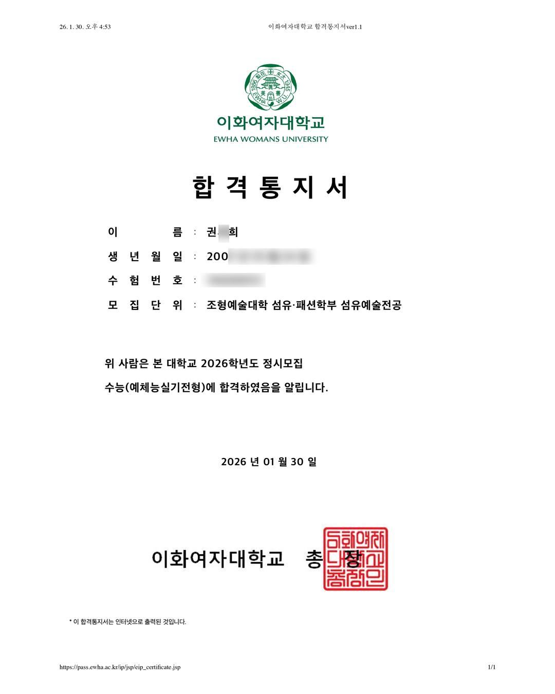 2026학년도 이화여자대학교 합격