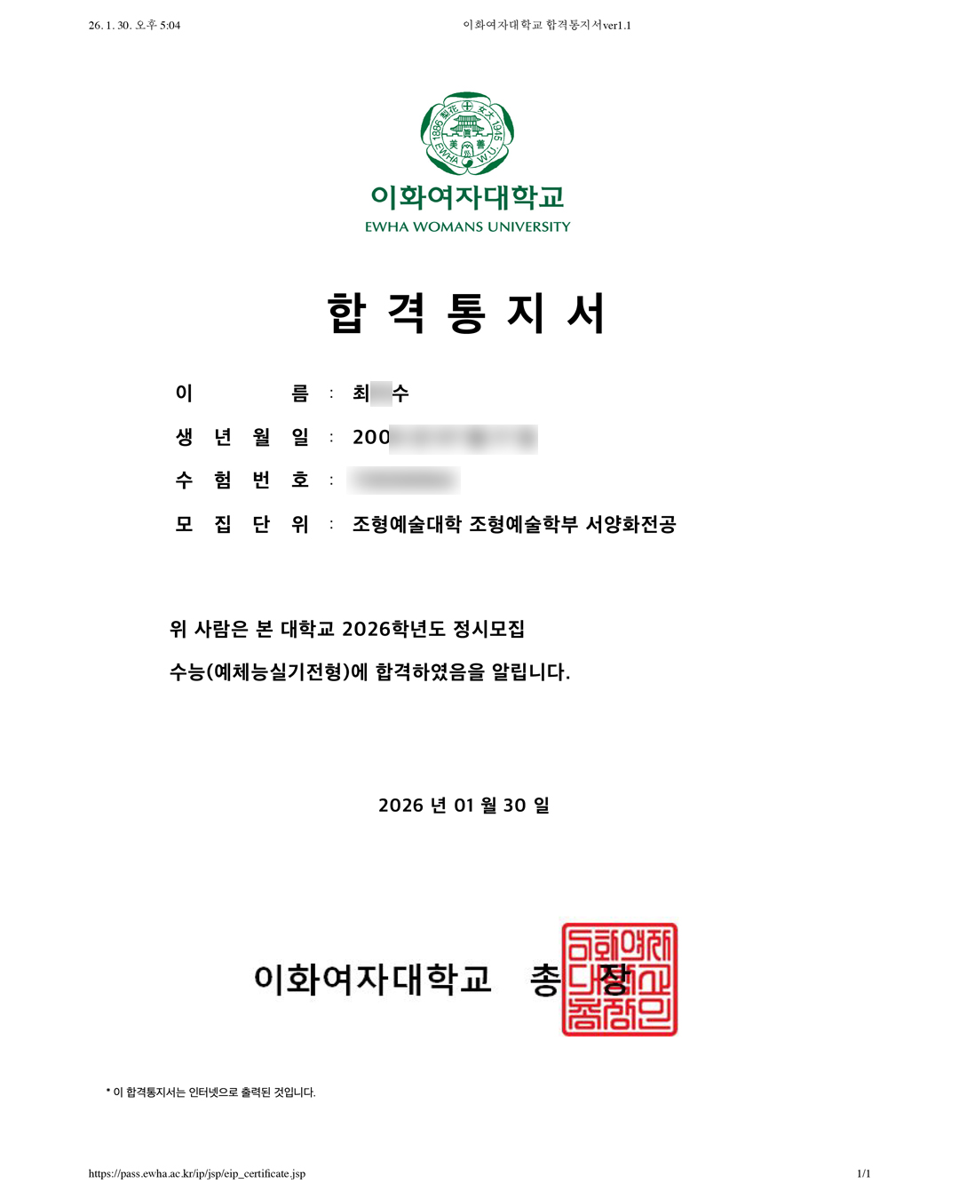 2026학년도 이화여자대학교 합격